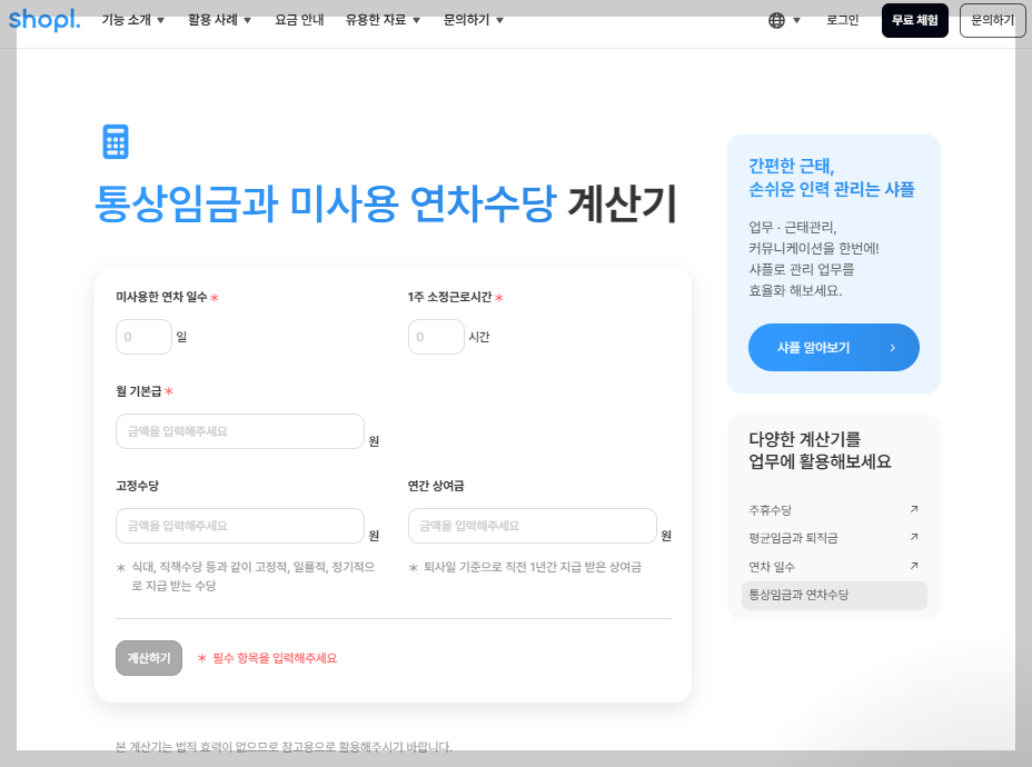 4. 시프티 연차수당 계산기