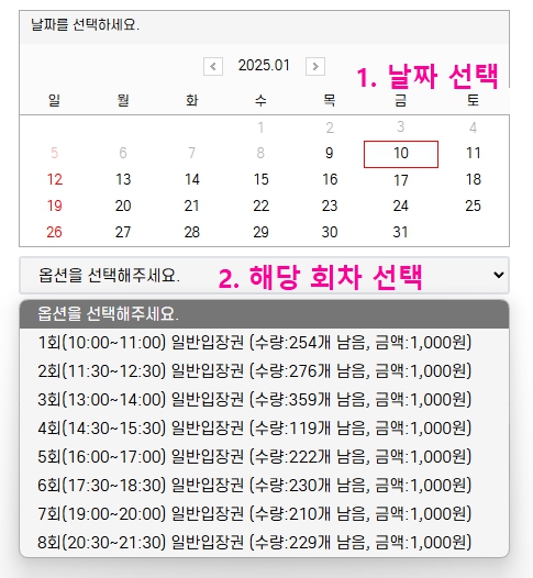 날짜와 해당 회차를 선택하신 후 결제 하시면 됩니다.